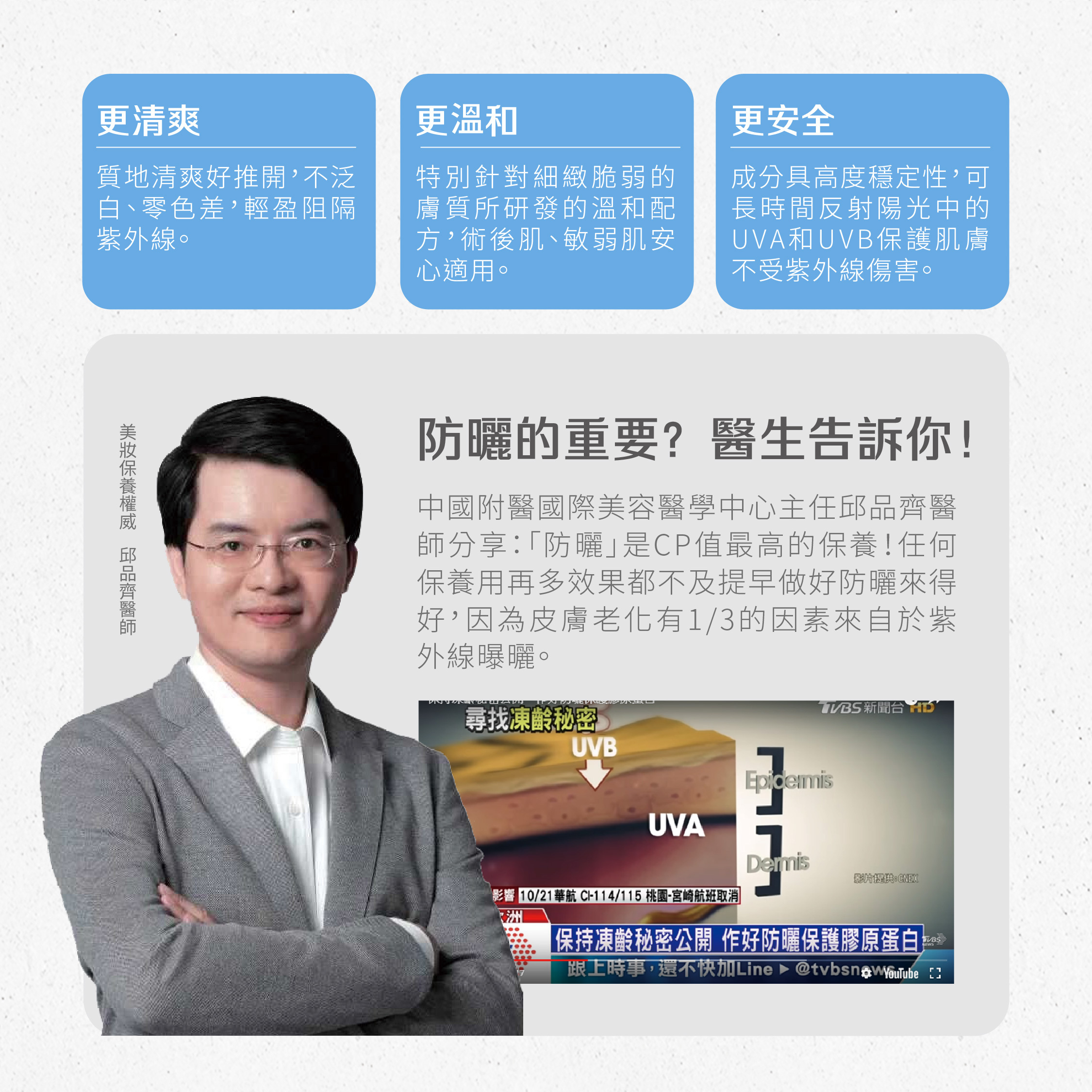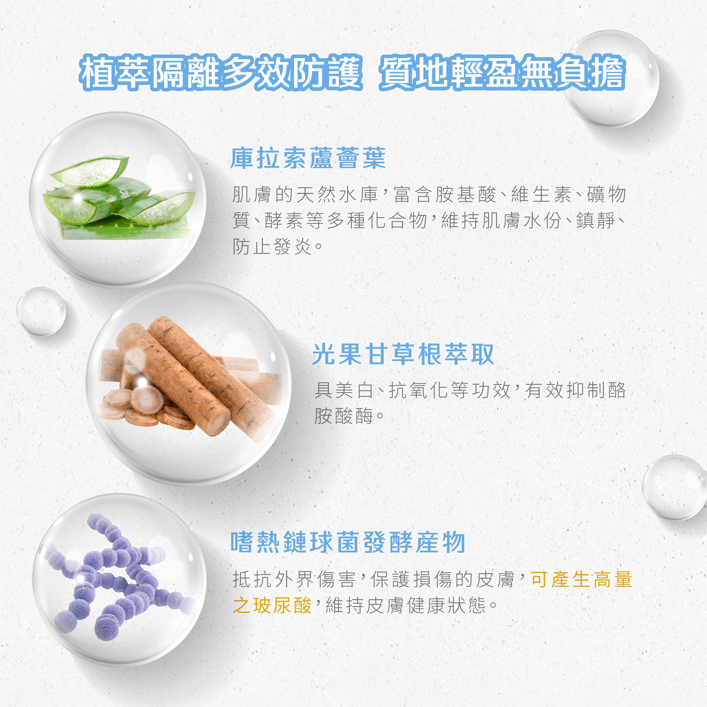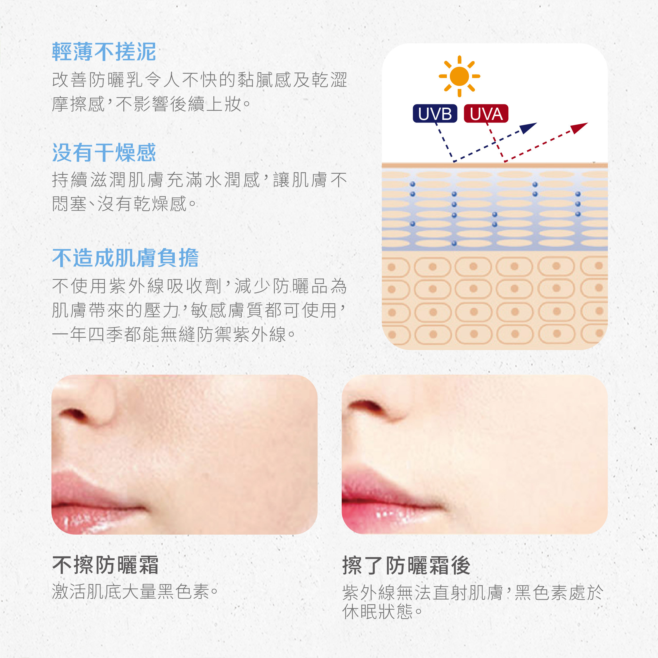 輕盈水乳質地|不泛白、不黏膩,日常舒適防護首選!