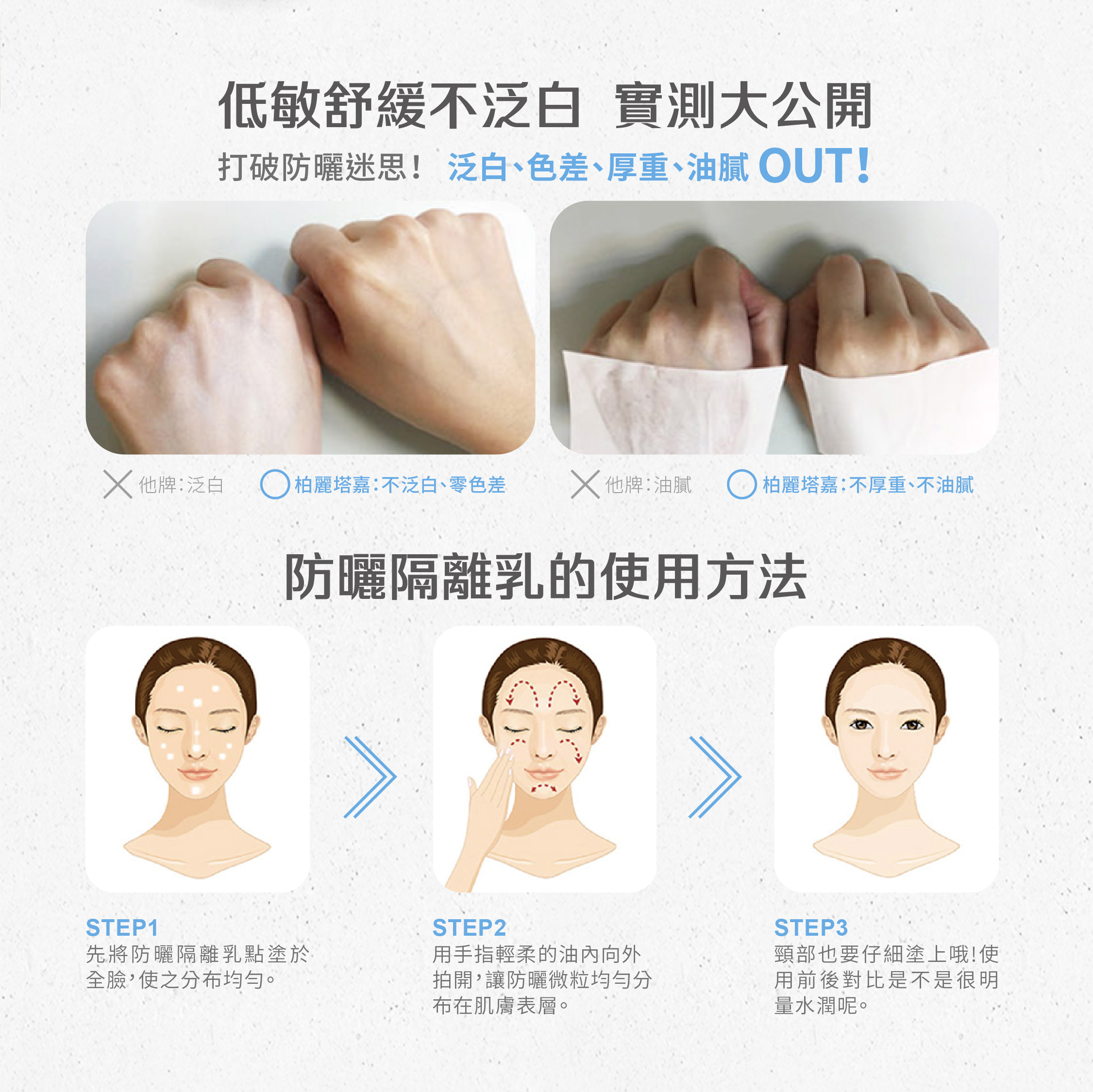 ☀ SPF50★★★★ 高防護力|有效隔離UVA/UVB,預防曬黑與光老化