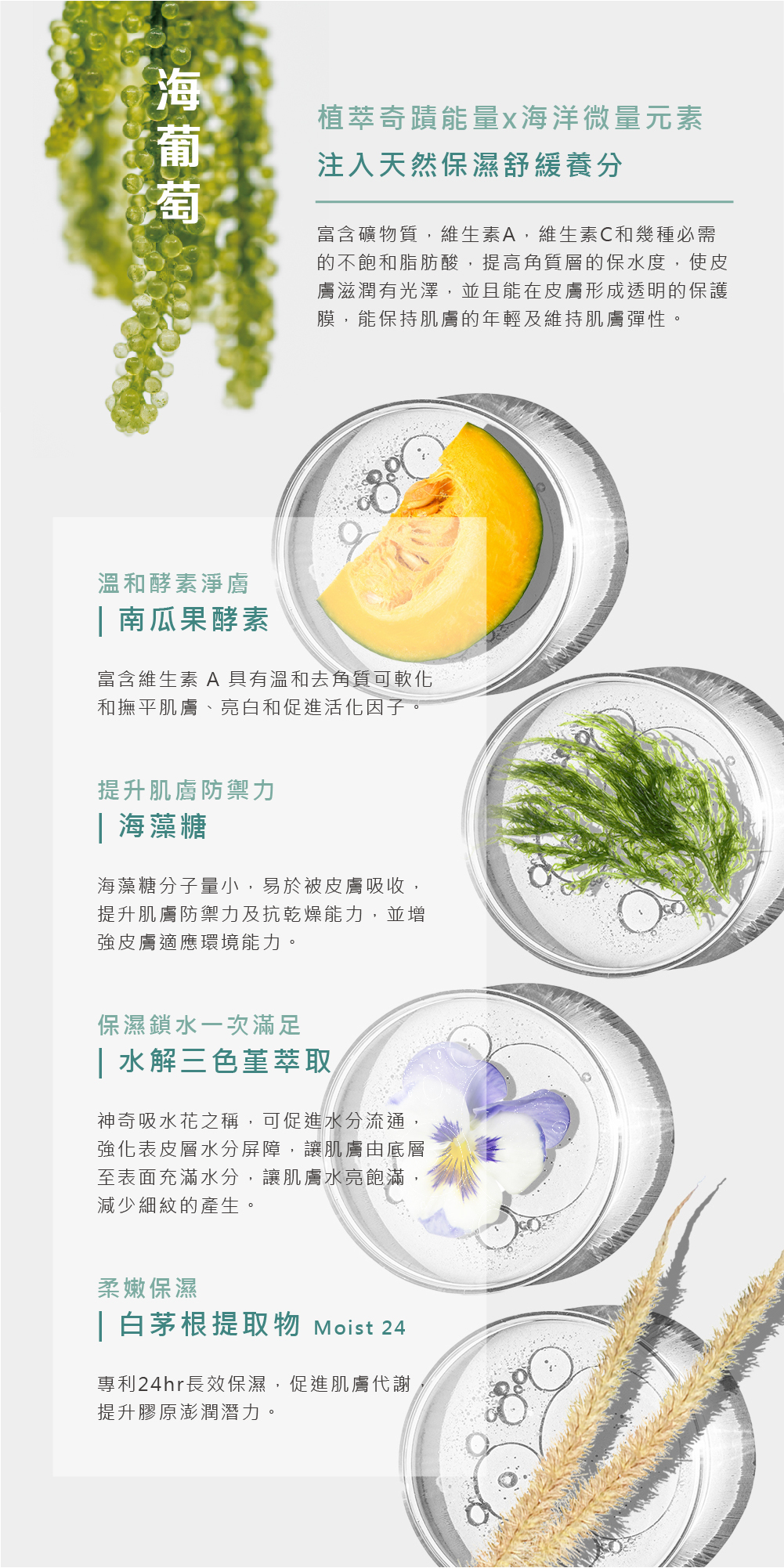 🌿 海葡萄萃取:補水保濕、彈潤修護