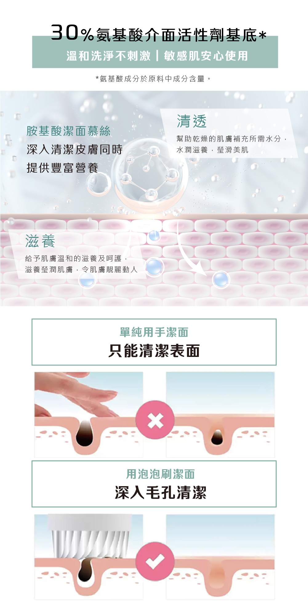 綿密慕斯+醫療級柔軟矽膠刷頭,打造洗臉×保養一次完成的全新體驗!