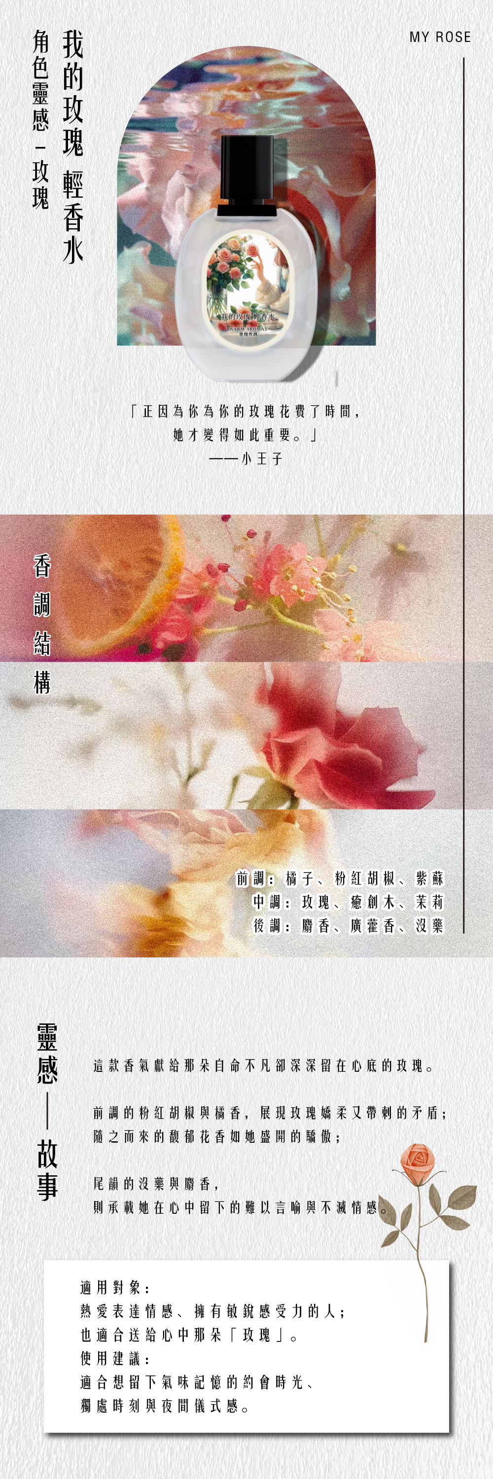 從小王子、狐狸到玫瑰,對應不同性格的香氣人格與心靈片段。