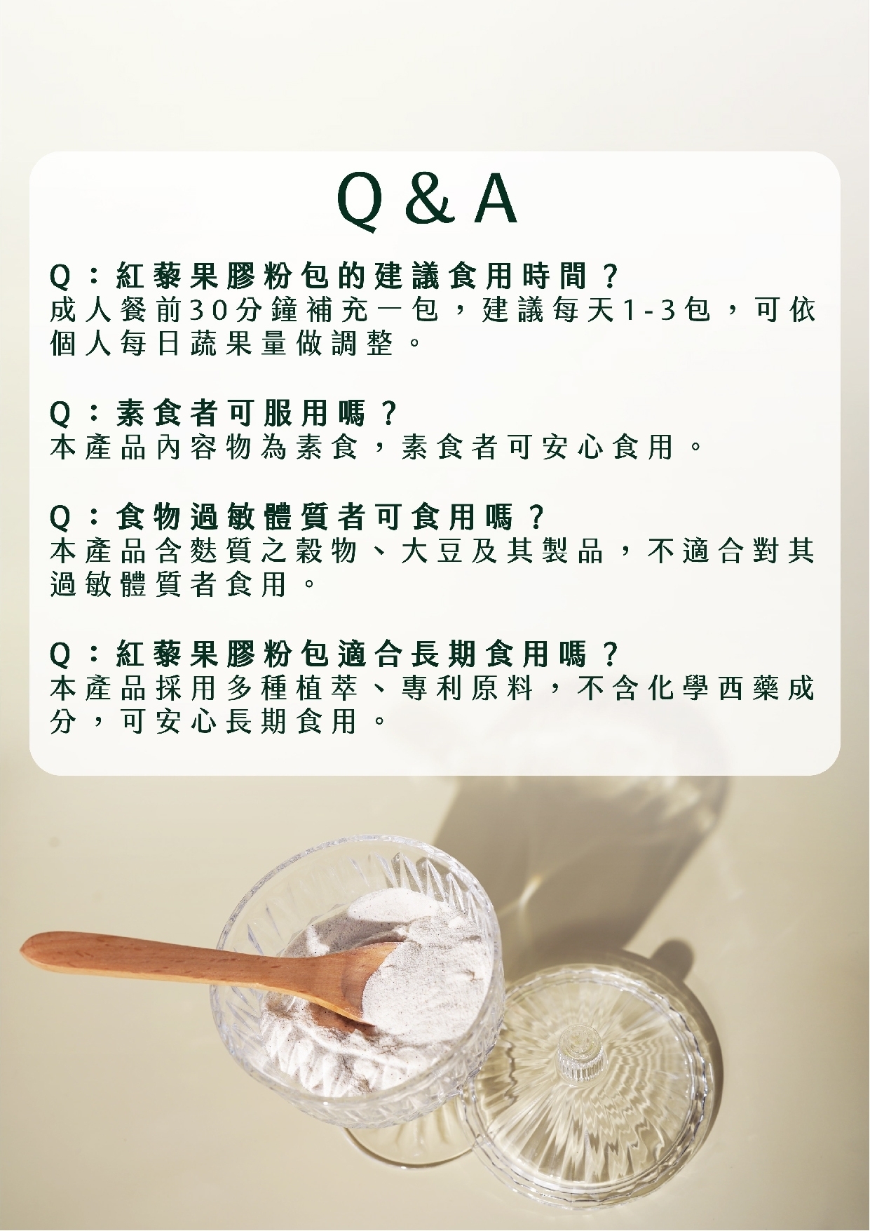 2. 有特殊疾病或特殊體質、過敏體質者,請務必諮詢醫師意見後再行食用。