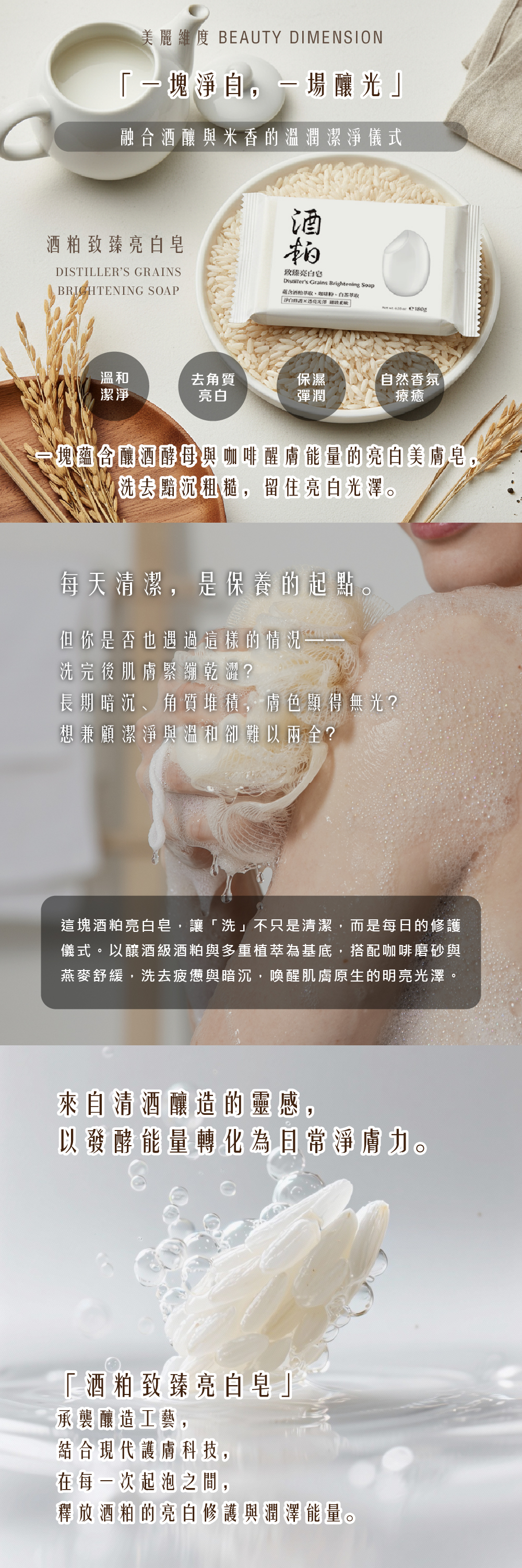源於純米釀造的美肌智慧,每一塊【酒粕致臻亮白皂】都蘊含發酵後的生命能量。