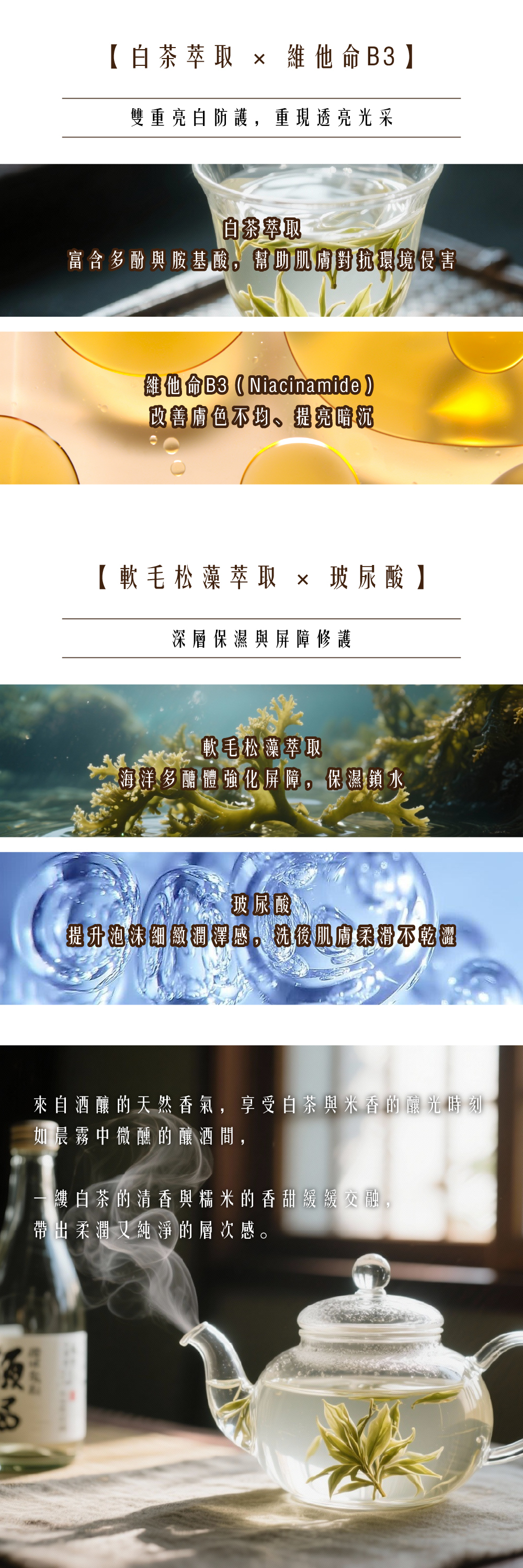 🍶 酒粕萃取|富含胺基酸與維他命,亮白修護、維持肌膚光澤。