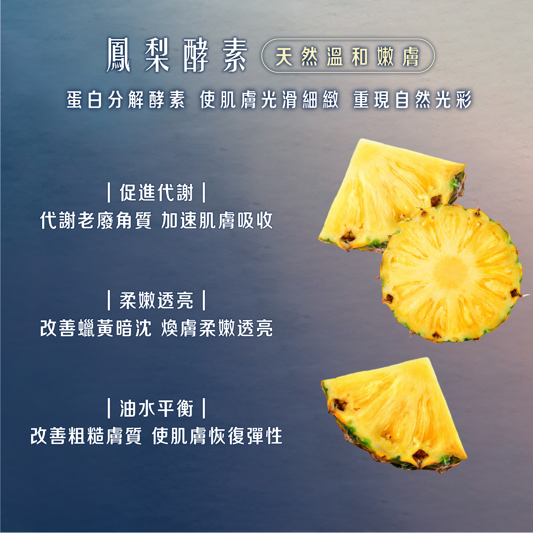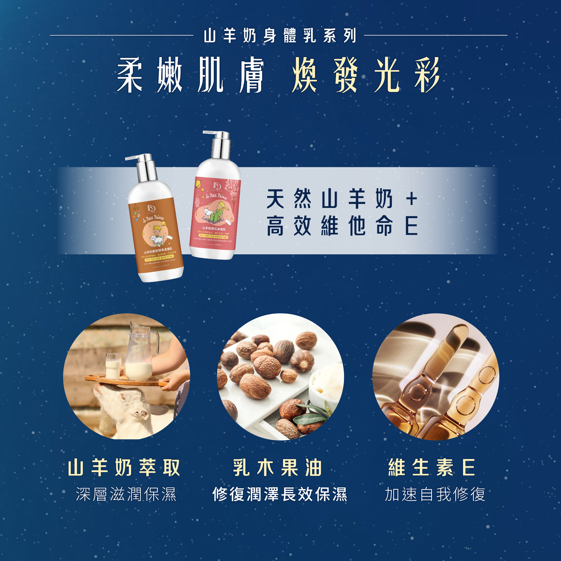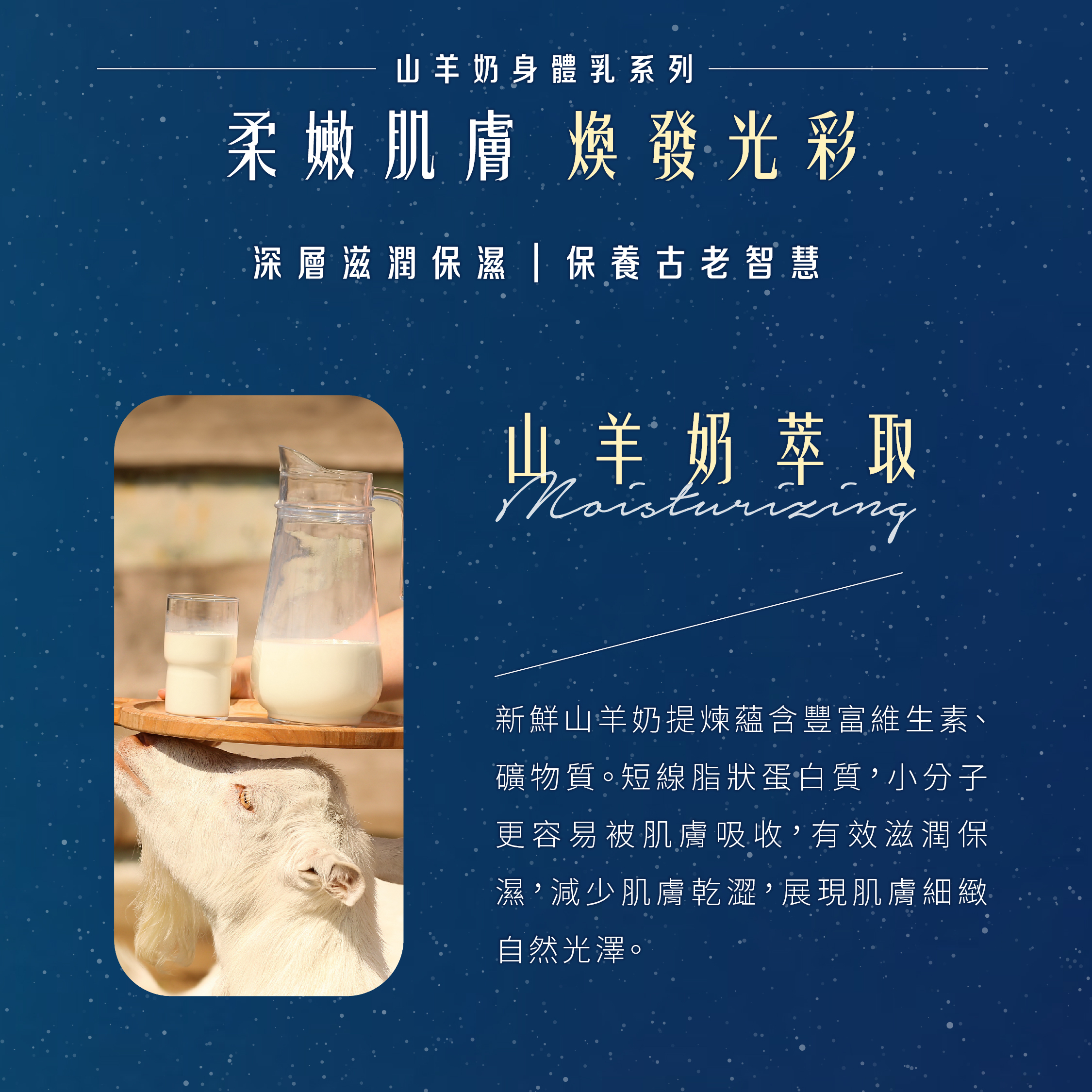 蘊含山羊奶萃取液、鳳梨萃取、三方益生菌
