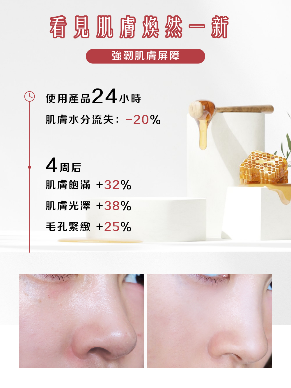 蘊含蜂蜜、銀耳萃取、蜂王乳萃取