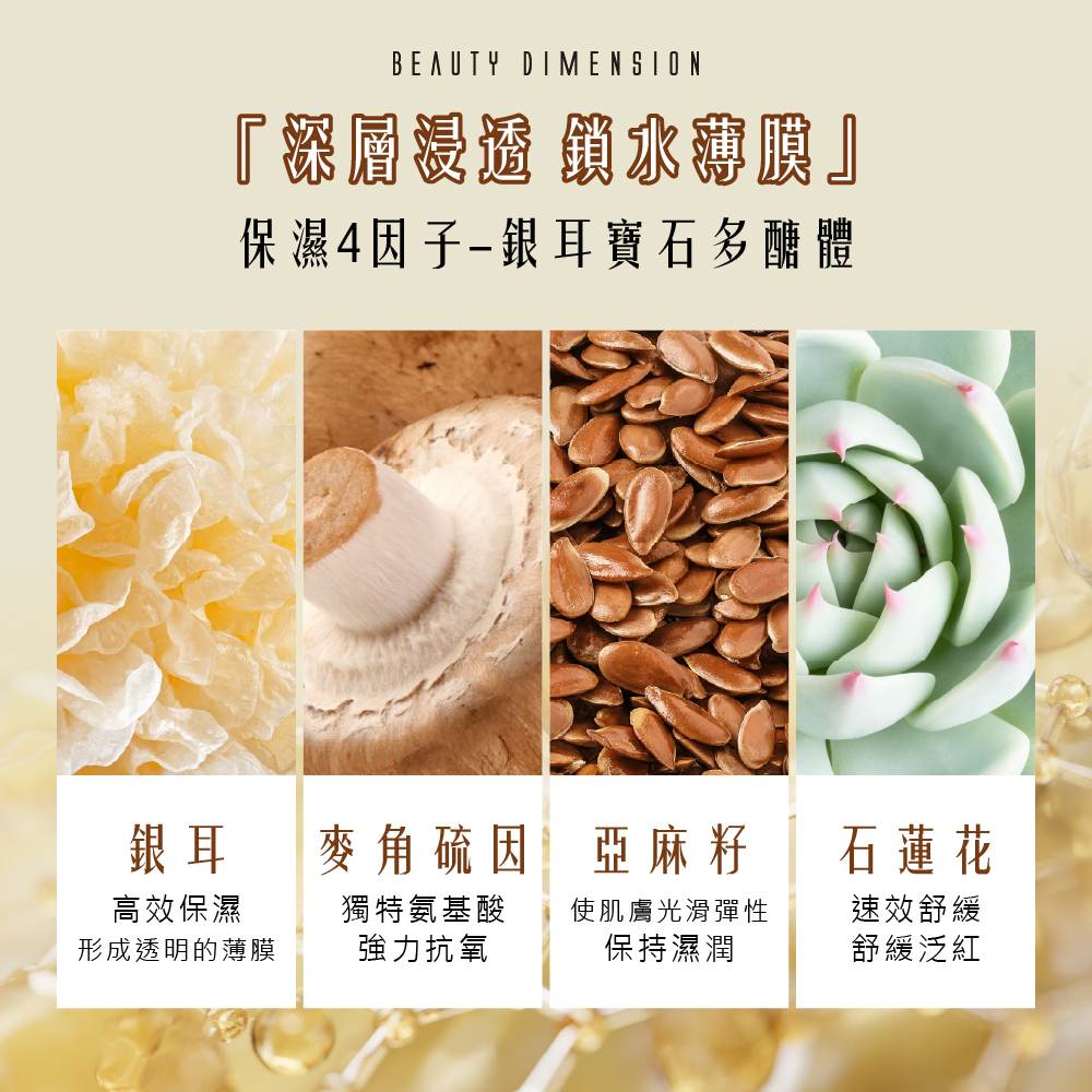 主成份:蜂蜜、銀耳萃取、蜂王乳萃取、蜂膠萃取、麥角硫因、角鯊