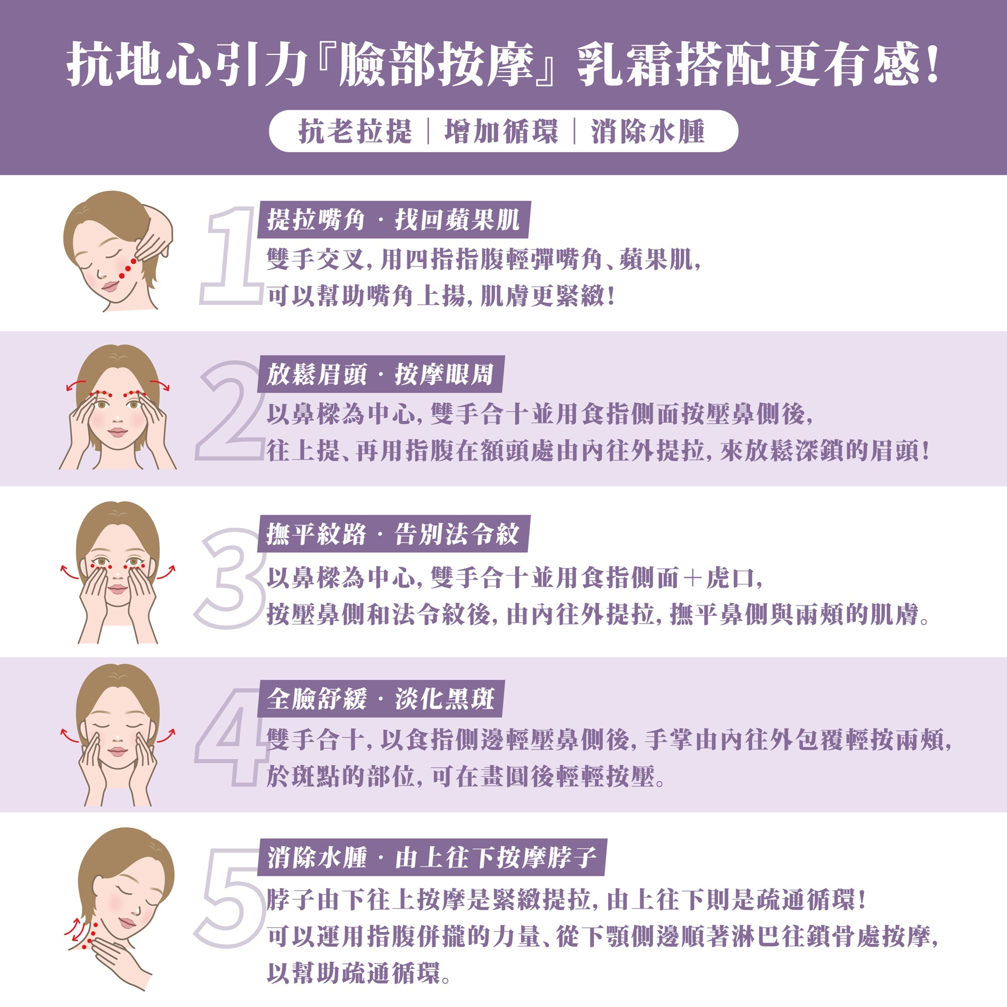 商品用法:取出適量塗抹於全臉,由內而外輕輕按摩至肌膚吸收即可。